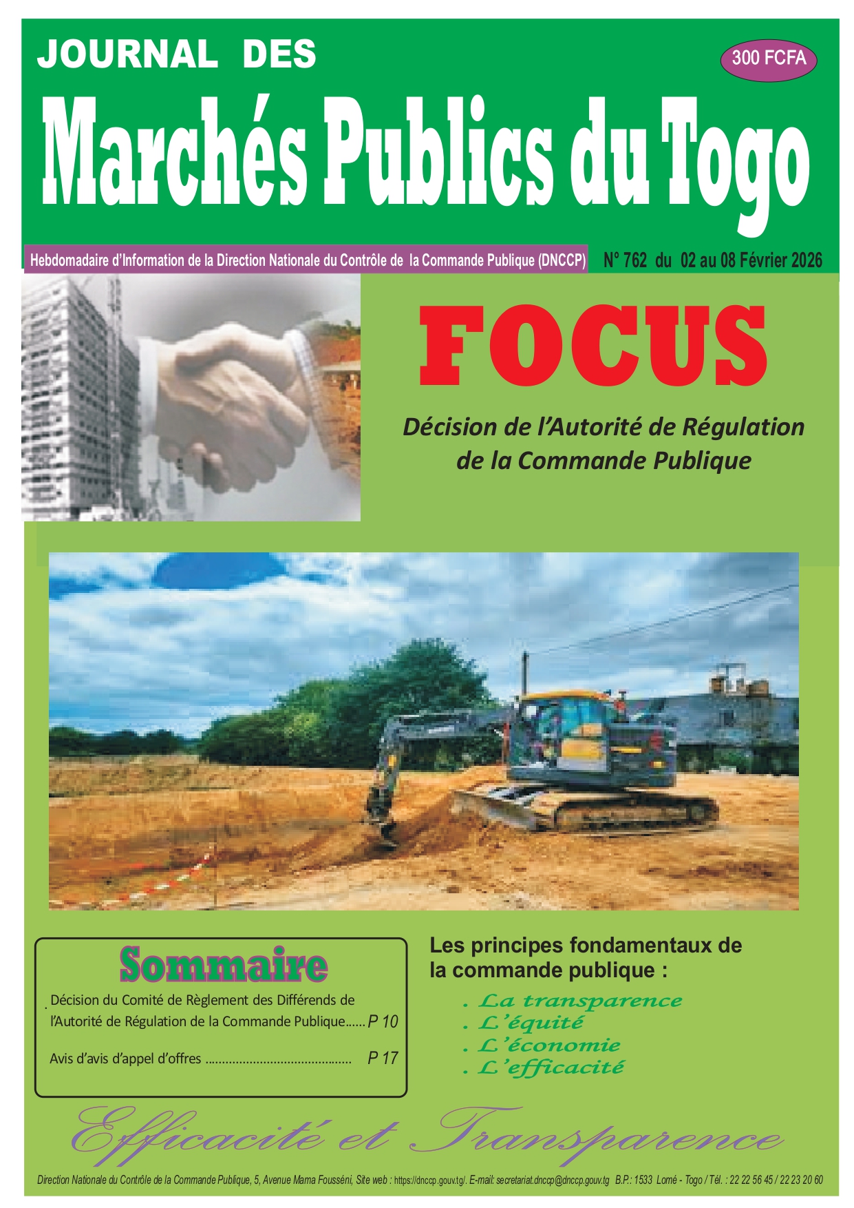 Cela fait maintenant neuf (09) ans que notre pays le Togo, à l’instar de ses voisins de la sous-région, à travers la transposition des Directives n°04 et n°05/2005/CM/UEMOA du 09 décembre 2005 de l’Union Economique et Monétaire Ouest Africaine (UEMOA), possède un système fiable de passation, de contrôle et de régulation des marchés publics.